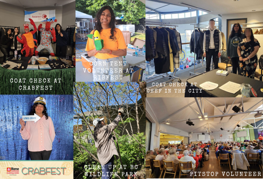 Volunteering with Kamloops Rotaract Club in events such as Crabfest, Ribfest, Pitstop, the BC Wildlife Park clean up, Brewloops, and Chef in the City allowed me to engage meaningfully with the local community while collaborating with volunteers from many cultural and professional backgrounds. Each event required different responsibilities such as helping with setup, guiding participants, coat-checking, serving food, or supporting clean-up, which strengthened my adaptability and willingness to step into new roles. Working in fast-paced service-oriented environments taught me the importance of clear communication, teamwork, and staying calm under pressure.